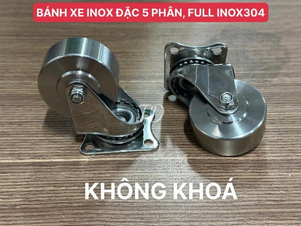 BÁNH XE INOX ĐẶC FULL INOX304, 5 phân- XOAY K KHOÁ